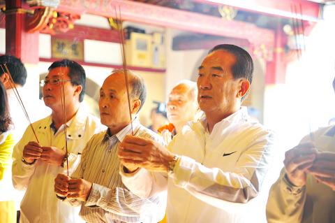 The campaign trail of People First Party presidential candidate James Soong (宋楚瑜) saw him arrive in Tainan at about noon, where he visited Chenghuang Temple (城隍廟) before traveling to Kaohsiung, where he attended a rally and led a motorcade through the municipality.