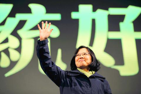 Shouting, cheering, waving flags, blowing horns and shooting fireworks, tens of thousands of people were ecstatic when president-elect Tsai Ing-wen (蔡英文) of the Democratic Progressive Party (DPP) and her running mate Chen Chien-jen (陳建仁) took to the stage in front of her national campaign headquarters to address the crowd after her victory was confirmed yesterday.