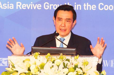 However, at an economic forum on Asian economic growth at the Grand Hyatt Taipei, Ma said that reviving economic growth and dealing with the slump in exports that followed the European debt crisis were global problems, while finding a new competitive edge for the economy was the inescapable responsibility of any Taiwanese leader.