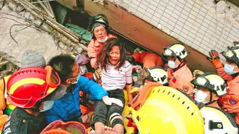 After a long and terrifying night, survivors of the collapsed Weiguan Jinlong residential building in Tainan’s Yongkang District (永康) gave a visceral account of their near-death experiences and struggles following a powerful earthquake that hit southern Taiwan early yesterday morning, while neighbors expressed disbelief over the frailty of the building.