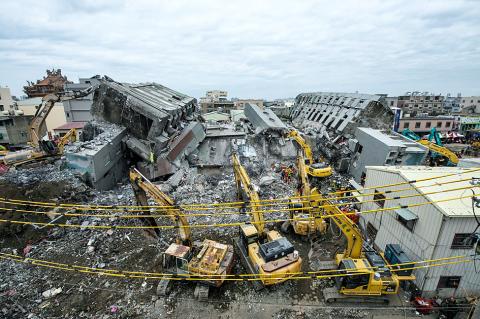 More bodies were extricated from the collapsed Weiguan Jinlong complex in Tainan’s Yongkang District (永康) yesterday, raising the death toll from Saturday’s earthquake to 47.