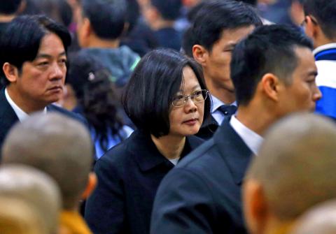 President Ma Ying-jeou (馬英九), president-elect Tsai Ing-wen (蔡英文), Premier Simon Chang (張善政), Legislative Speaker Su Jia-chyuan (蘇嘉全) and many other politicians attended the service.