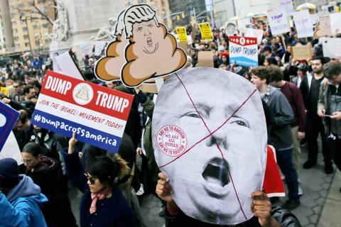 New Yorkers turned out for the event, concerned by Trump’s status as the clear frontrunner for the Republican party’s nomination ahead of November’s presidential elections.
