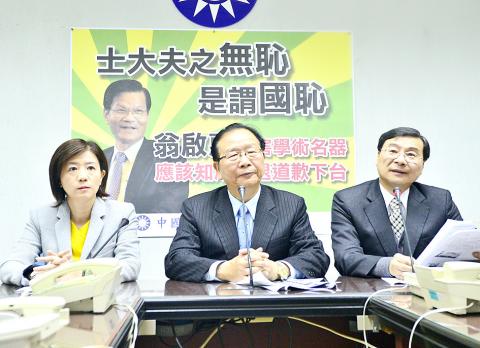 The KMT caucus called on Wong Chi-huey to issue a public explanation. KMT Legislator Alicia Wang (王育敏) said the Academic Sinica president should know right from wrong, calling on prosecutors and the Control Yuan to initiate an investigation.