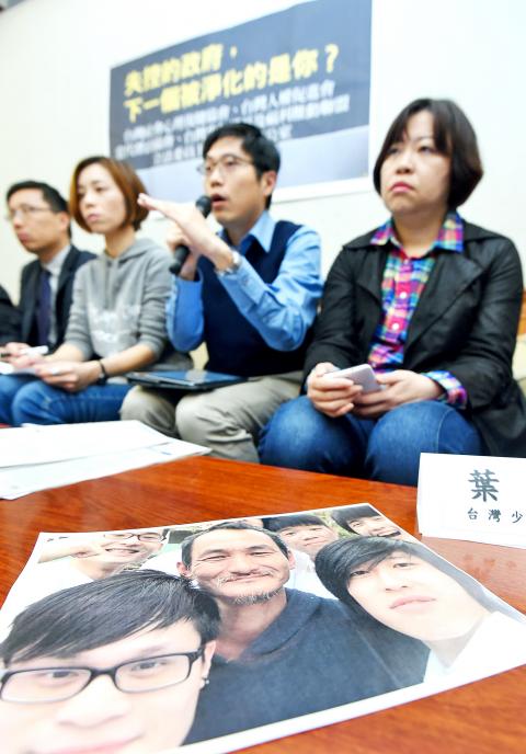 “Even if he has a mental illness, if there is no concern that he will harm himself or others, he should not be consigned to hospital,” Taiwan Association for Human Rights deputy chairman Weng Kuo-yan (翁國彥) said.