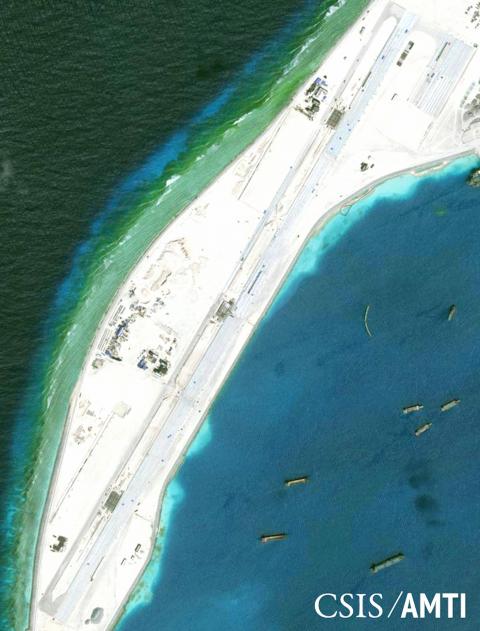 Mischief Reef is now the site of one of three military-length airfields China has built on artificial islands in the Spratly archipelago.
