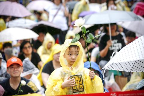 Association chairwoman Eva Liang (梁毓芳) said people had chosen to take part in the rally to protest against calls to scrap the death penalty because they wanted to protect the next generation.