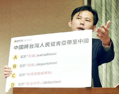 “In the Kenya incident, the whole nation should unite together to help our fellow citizens, but we have some government officials who are letting us down,” Democratic Progressive Party (DPP) Legislator Lo Chih-cheng (羅致政) said. “Tai said China taking our citizens by force from Kenya conforms to principles of international criminal jurisdiction. Why did she take China’s side?”