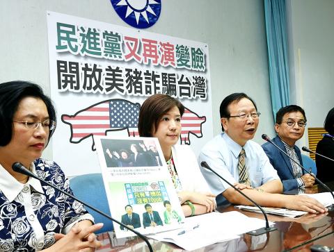 The Chinese Nationalist Party (KMT) has accused the Democratic Progressive Party (DPP) of “scamming” the public after Council of Agriculture minister-designate Tsao Chi-hung (曹啟鴻) said in an interview that Taiwan does not have the leverage to refuse imports of US pork.