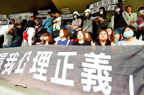 A group of about 50 people, members of a self-help association, along with relatives and supporters, demonstrated outside the Shilin District Court in Taipei, while some attended the court session to hear the ruling.