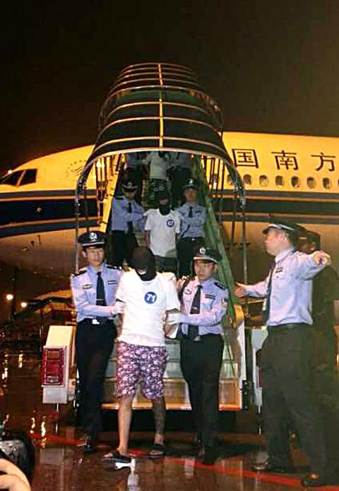 The 32 people deported to China yesterday were among a group of 52 Taiwanese who were arrested in Malaysia last month on suspicion of telecommunications fraud targeting people in China.