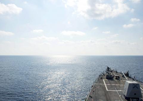 Guided missile destroyer the USS William P. Lawrence traveled within 12 nautical miles (22.2km) of the Chinese-occupied Fiery Cross Reef (Yongshu Reef, 永暑島) in the Spratly archipelago (Nansha Islands, 南沙群島), Department of Defense spokesman Bill Urban said.