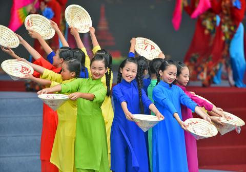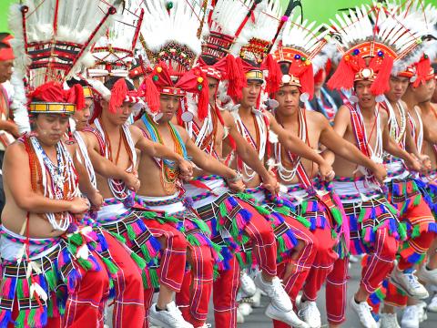 Before Tsai’s inaugural address, a group of Paiwan children, several children’s choirs and Jingmei Girls High School students joined Tsai and Chen in singing the Republic of China national anthem, rearranged to blend in with a traditional Paiwan tune.