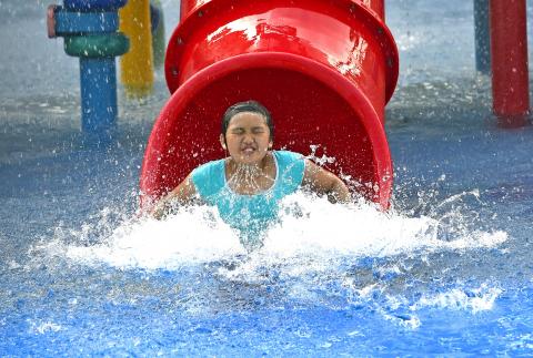 Bureau data showed the mercury in Taipei surged to 37.9°C at 12:54pm, breaking the record. It further climbed to 38°C, 38.1°C and 38.2°C at 1:16pm, 1:28pm and 1:34pm respectively.