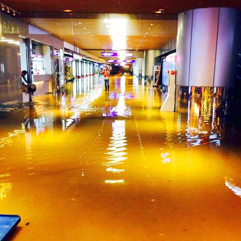 Rainwater also leaked through the ceiling of Terminal Two and caused flooding in its underground food court.