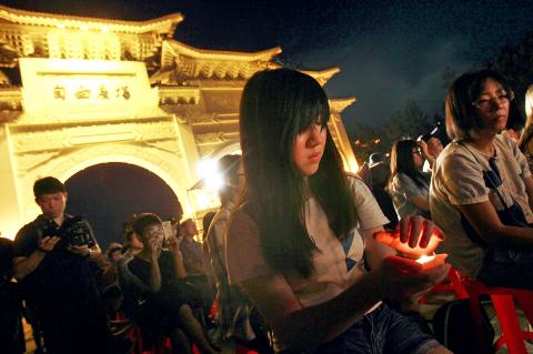 Organized by the Student Workshop for Promoting China’s Democracy, the New School for Democracy, the Friends of Liu Xiabo (劉曉波) and the National Taiwan University Student Council, and with the support of a handful of local human rights groups, the event’s site was symbolic, as it was the location of important student demonstrations during Taiwan’s democratization, including an overnight rally on June 3, 1989, in support of the protesters in Tiananmen Square in Beijing.