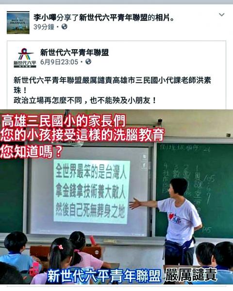 Hung Su-chu yesterday wrote on Facebook that the confrontation in the video began because the man had made comments about how “stupid” Taiwanese are.