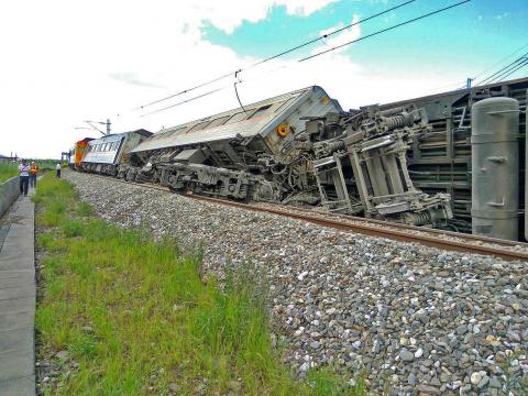 The derailment occurred at 2:49pm when the train, which had begun its trip at Kaohsiung’s Sinzuoying Station and was carrying 200 passengers, was on its way to Hualien, the TRA said.