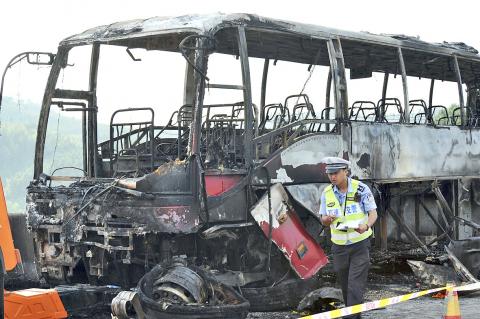 Xinhua said rescuers were searching the charred frame of the bus for clues to the incident.