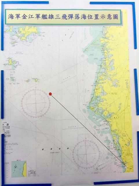 A chart provided by the navy showed that the simulated target was in the Taiwan Strait, northwest of the harbor and southeast of the offshore county of Penghu.