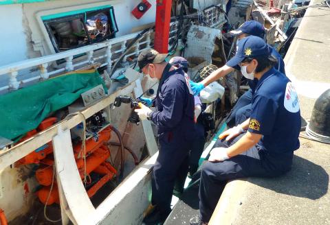 Wang yesterday led a team of prosecutors and investigators aboard the Hsiang Li Sheng for further examination and to search for evidence after the boat was towed to the Shinda Harbor (興達港) in Kaohsiung’s Cieding District (茄萣).