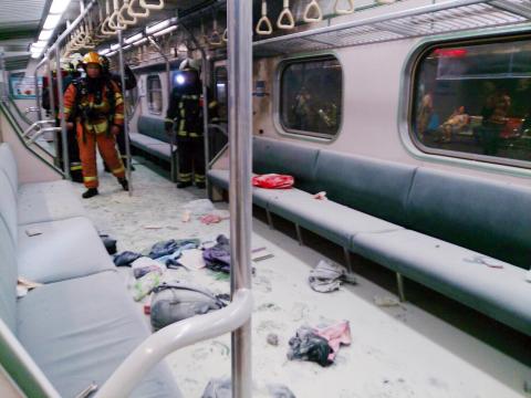 The explosion, which occurred at about 10pm on Thursday in the sixth carriage of a commuter train as it headed into Songshan Railway Station (松山車站), injured 25 passengers.