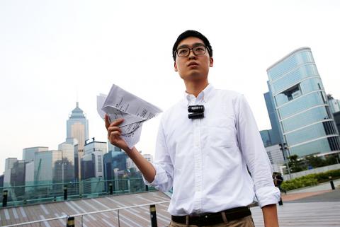Chan Ho Tin (陳浩天), a National Party candidate, was disqualified from next month’s vote after refusing to sign a declaration acknowledging Hong Kong as an administrative region of China, the South China Morning Post reported.