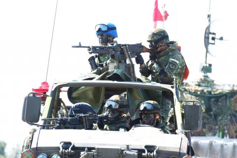In southern Taiwan, Chief of the General Staff Yen Te-fa (嚴得發) presided over preparations for live-fire drills involving the army, navy and air force scheduled to take place tomorrow at the military’s Joint Operations Training Base Command (三軍聯訓基地) in Pingtung County.