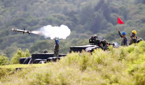 Yesterday’s field exercises were led by the 564th Armored Brigade of the 8th Army Corps, which conducted the joint command operation with the brigade’s mechanized infantry and its tank force, Major General Yang Wei-wu (楊威武) said.