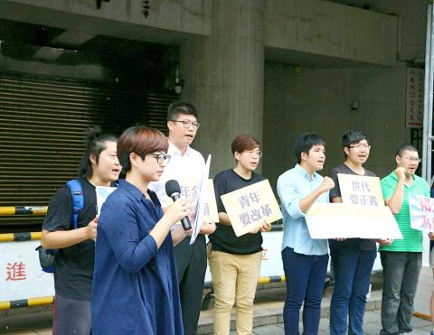 Representatives from a coalition of young people’s groups voiced their support for pension reform in Taipei yesterday.