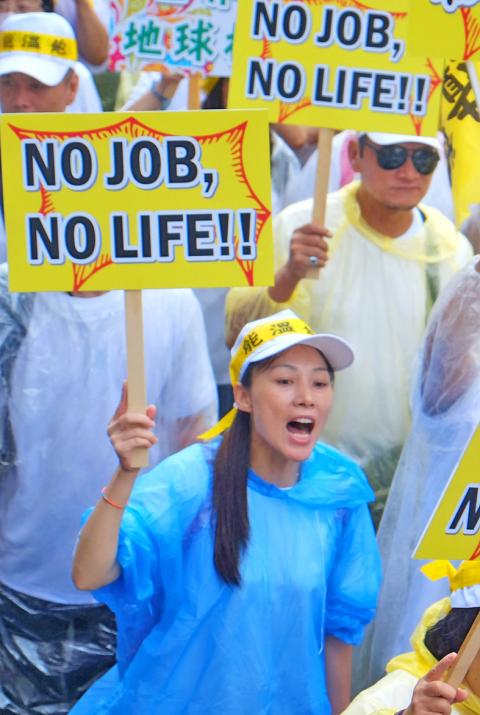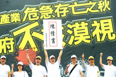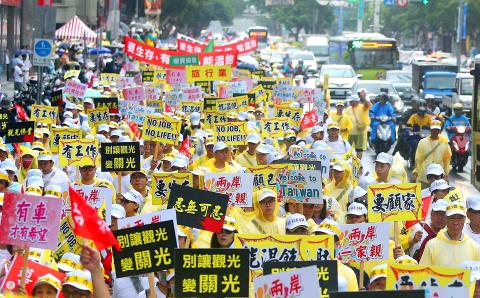 A travel agency manager from Kaohsiung surnamed Rong (容) said those who took part in yesterday’s protest were “only the tip of an iceberg,” adding that the situation was expected to worsen in the next three months.