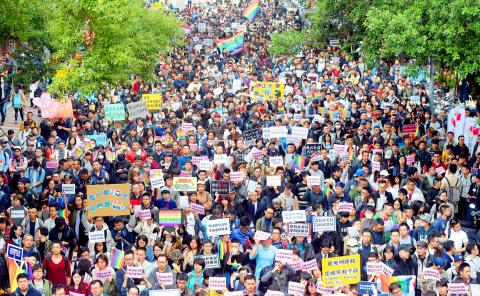 “I originally thought this would be a small matter, because some homosexuals are essentially saying they are willing to accept legal restrictions,” said Chen Yi-chien (陳宜倩), a law professor affiliated with Shih Hsin University’s Graduate Institute for Gender Studies, referring to the Criminal Code’s ban on adultery.