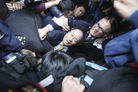 Kuo said the protesters wanted to ask Ker about his decision on the proposed amendments when they saw him on Qingdao E Road, adding that the scuffle broke out after police tried to clear a path through the group.