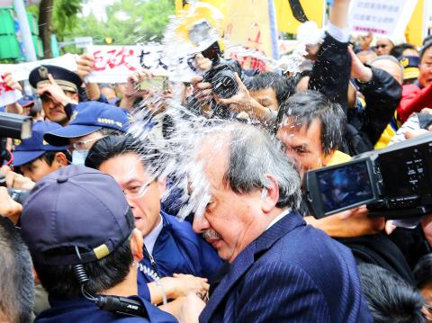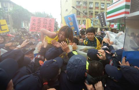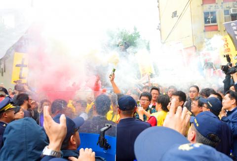 DPP Deputy Secretary-General Lee Chun-yee (李俊毅) said violent protests “offer no help to policy discussion that could instead be undertaken with opinions expressed rationally and peacefully,” and called on prosecutors and police to investigate the incident, “which constituted a criminal offense,” without delay.