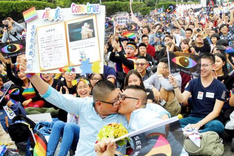 More than 200,000 people yesterday gathered for a public concert on Ketagalan Boulevard in Taipei in support of same-sex marriage.