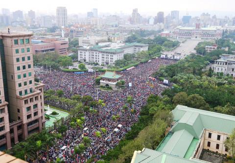 The organizers said that the crowd started to gather at 1pm and reached at least 200,000 people at about 4pm, spanning 4km.