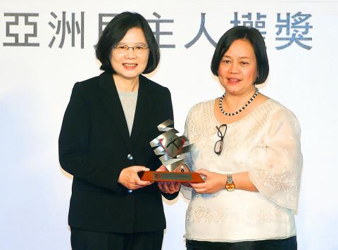Earlier yesterday, Tsai visited the Taiwan Foundation for Democracy to preside over an award ceremony presenting the Asia Federation Against Involuntary Disappearances with the Asia Democracy and Human Rights Award.