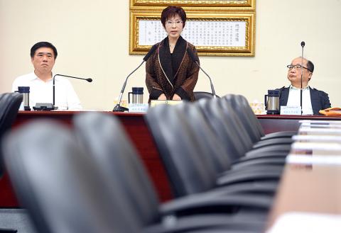 According to KMT regulations, a quorum for a meeting of the party’s Central Standing Committee should consist of at least half of the 40 eligible participants, who are the chairperson, five vice chairmen and 34 members.
