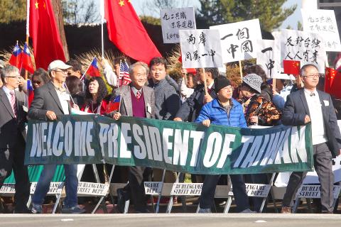 Some protesters rallied against Tsai’s China stance outside the hotel, while others gathered to show their support for the president.