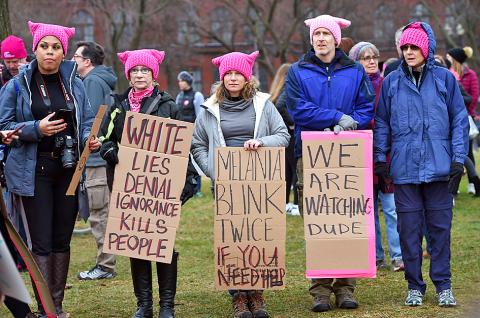 Women-led protests against Trump, who has vowed that US policy would be based on the principle of “America first,” also were staged in Sydney, London, Tokyo and other cities across Europe and Asia.