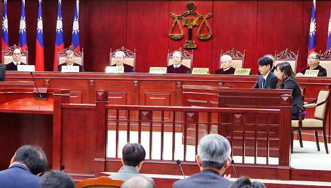 The debate will address two requests for a constitutional interpretation on the issue of same-sex marriage, the council said, adding that the cases were filed by the Taipei City Government and gay rights advocate Chi Chia-wei (祁家威).