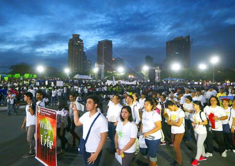 Police estimated that at least 10,000 people joined the “Walk for Life” march and rally starting at dawn at Rizal Park, carrying placards that read “Choose life” and “No to death penalty.”