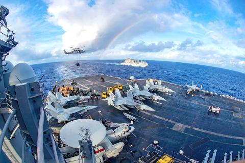 However, Beijing “firmly opposes any country’s attempt to undermine China’s sovereignty and security in the name of the freedom of navigation and overflight,” ministry spokesman Geng Shuang (耿爽) said on Wednesday, responding to reports that the Vinson was headed to the South China Sea.
