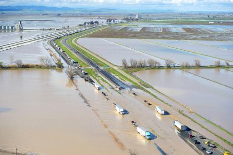 Northwest of Sacramento, nearly 200 people were evacuated on Saturday as overflowing creeks turned the town of Maxwell into a brown pond, with some homes getting 61cm of water.