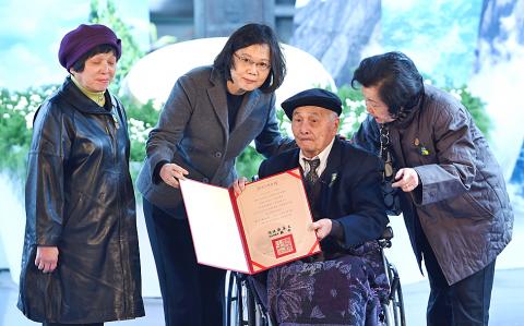 The commemorative ceremony, despite being briefly interrupted by protests, also saw the president hand out certificates of good character to a number of victims of the 228 Incident or their families to restore their reputations.