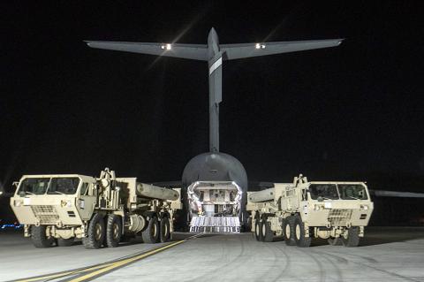 US missile launchers and other equipment needed to set up a controversial missile defense system have arrived in South Korea, the US and South Korean militaries said yesterday, a day after North Korea test-launched four ballistic missiles into the ocean near Japan.