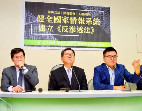 New counterintelligence legislation is urgent because all aspects of society — including the military, government and civilian sectors — have been infiltrated by Chinese spies, DDP Legislator Chen Ming-wen (陳明文) said.
