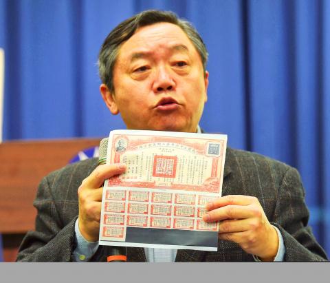 Presidential Office spokesman Sidney Lin (林鶴明) said that as the bonds were issued by the KMT regime in China before the promulgation of the ROC Constitution in 1947, they do not concern Taiwanese, nor the committee’s ongoing effort to probe the KMT’s ill-gotten assets.