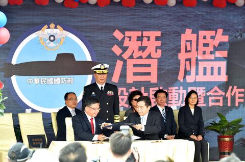 Yesterday’s signing was also witnessed by President Tsai Ing-wen (蔡英文), who said the construction of submarines is the most challenging aspect of the nation’s policy to create an independent national defense industry.