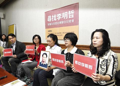 “He did not contact me as planned, did not check into his hotel and his mobile phone is unreachable,” Lee’s wife, Lee Ching-yu (李淨瑜), said at a news conference with human rights advocates at the legislature in Taipei.